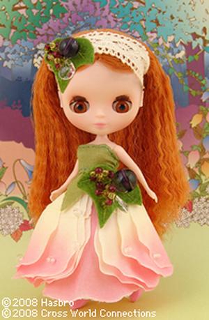 Her dress has beads like morning dew, the fruits and nuts give her the essence of a true forest sprite.