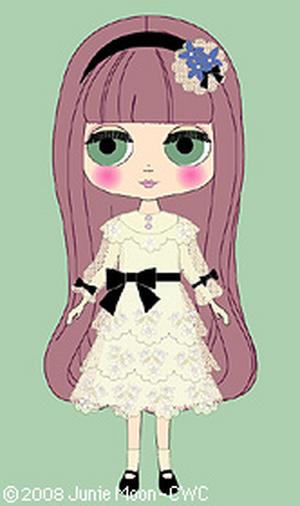 ドールは淡いむらさきのボブヘア、ブラウンがかったピンクの瞳に、