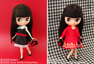 マトリョーシカをイメージしたアウトフィットには、プチブライスらしいポップな柄が配され楽しい雰囲気に仕上がっています。