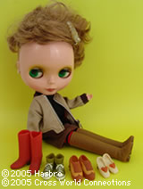 丸襟の白いブラウスとベージュのタータンチェックのスカートに緑のジャケットを合わせれば、トラッドで清楚なスクールガールに。気分を変えたいときは水色のベストで、爽やかな装いを…(ベストの上からジャケットは羽織れません)。制服のコートといえば定番のピーコートも、襟がセーラーカラーになってブライスならではのこだわりが見られます。