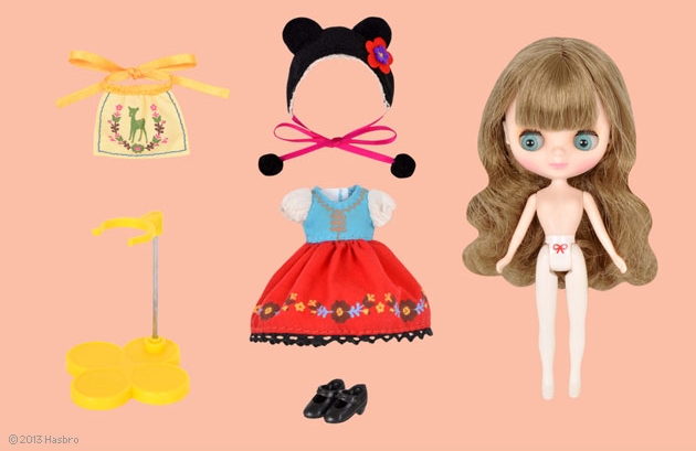【セット内容】ドール、ワンピース、帽子、バスケット、ブーツ、ショーツ、スタンド