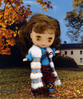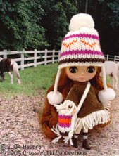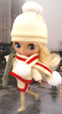 ブラウンニットとざっくりかぶる暖かみのあるニット帽と鞄がキュートなブライスにぴったり。