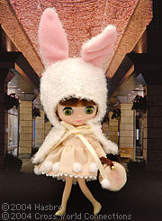 ドール、ワンピース、ウサギの耳つきケープ