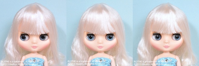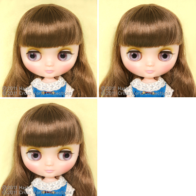 Eye colors: pink (front), blue (right), green (left) Special eye color: light purple (front).