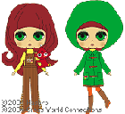 おそろいのミニスカートに、オレンジのタ