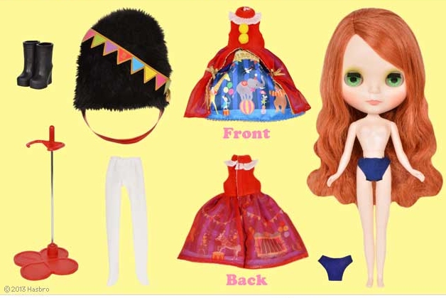 Zinochika wears a special one piece dress that illustrates the world of the circus.